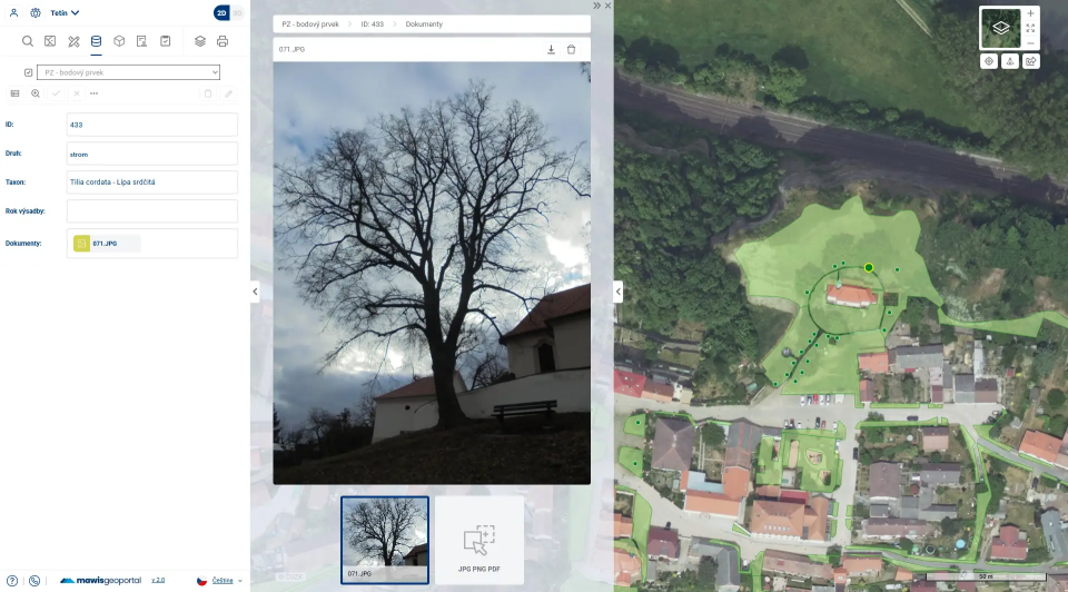 V Mělníku jsme provedli rozsáhlou aktualizaci pasport zeleně v zaměřenou na stromy, kterých je na území města tisíce. V rámci prací jsme zajistili jejich zaměření, podrobné posouzení jejich stavu tedy dendrologii, fotodokumentaci a následné vložení všech dat do MawisGeoportal. Díky tomu, že je pasport zpracován podrobně dle požadavků města a je navíc přístupný v cloudové aplikaci MawisGeoportal, mohou pracovníci města v terénu snadno zaznamenávat aktuální stav pomocí tabletu a přímo jej uložit a aktualizovat v pasportu. Kromě toho pasport zeleně v aplikaci využívají pracovníci města pro zadávání úkolů technickým službám, např. pokácejte tento konkrétní strom (je vyznačen v mapě) nejpozději do tohoto data. Výhodou toho je, že úkol zadají přímo v geoportálu v pasportu a nemusí úkol posílat emailem.
